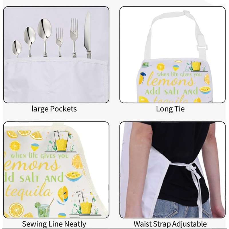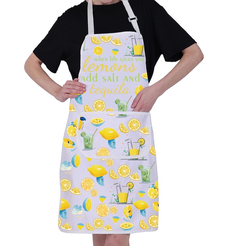 BNQL Lemons Apron for Women with Pockets Lemon Gifts When Life Gives You Lemons Add Salt and Tequila Apron Funny Lemon Apron