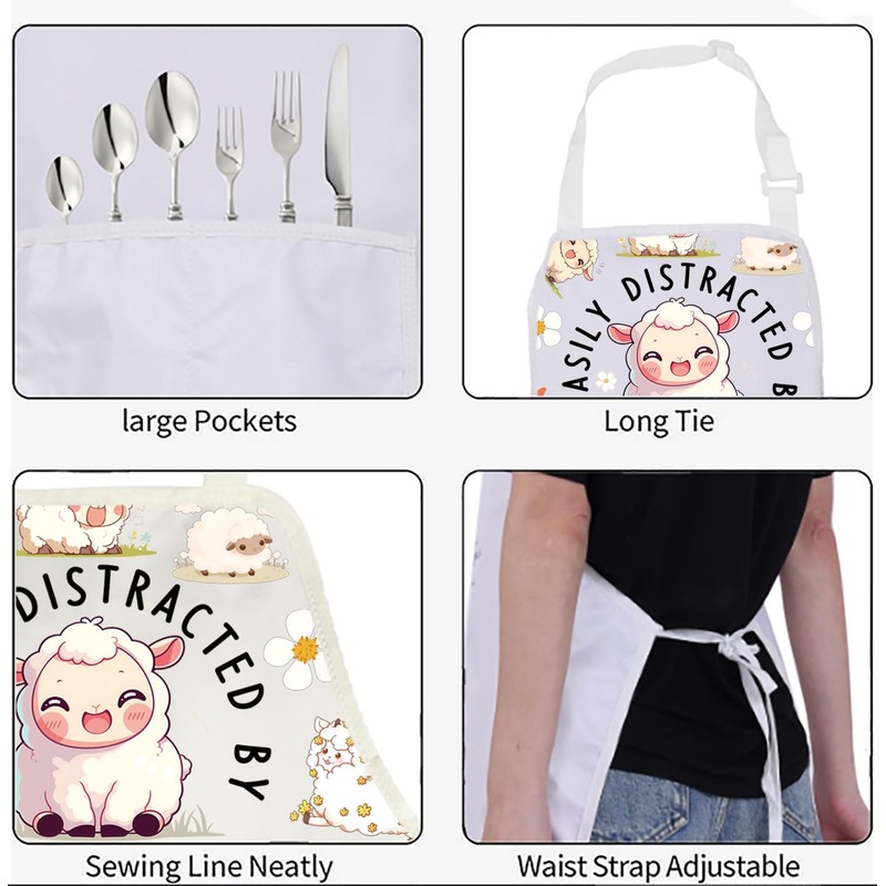 Size: This Easily Distracted By Sheep kitchen apron can be adjusted according to different body types, with a neck strap and waistband of 72*68 centimeters (28.34*26.77 inches), suitable for most people's body types, soft and durable.