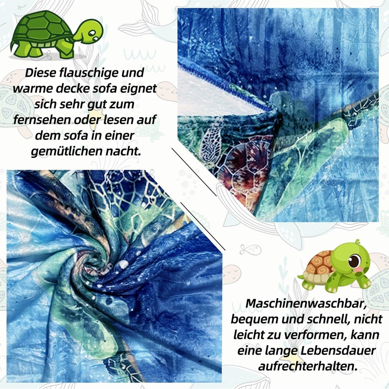 - Weak and warm: the turtle cuddly blanket warm made of flannel is made of high-quality material. The cuddly blanket fluffy throw blanket is super soft, durable, warm, lightweight, colour-fast, tear-resistant and odourless.