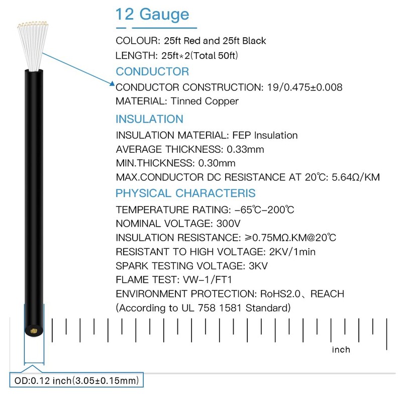 BNTECHGO 12AWG FEP Teflon Coated Tin-Plated Copper Wire in 2 Color Each 25ft ...