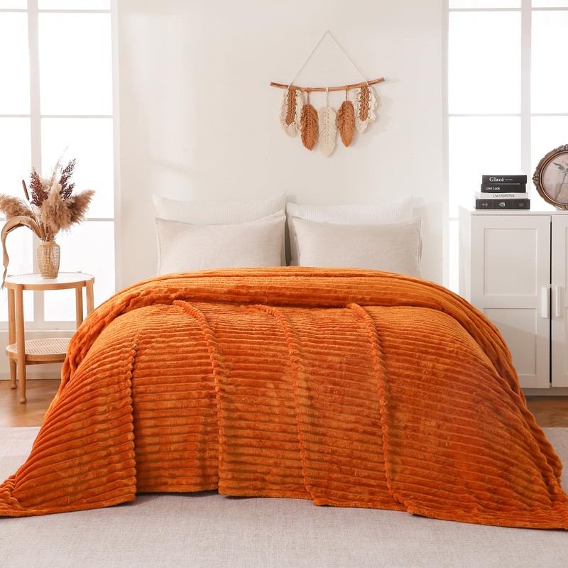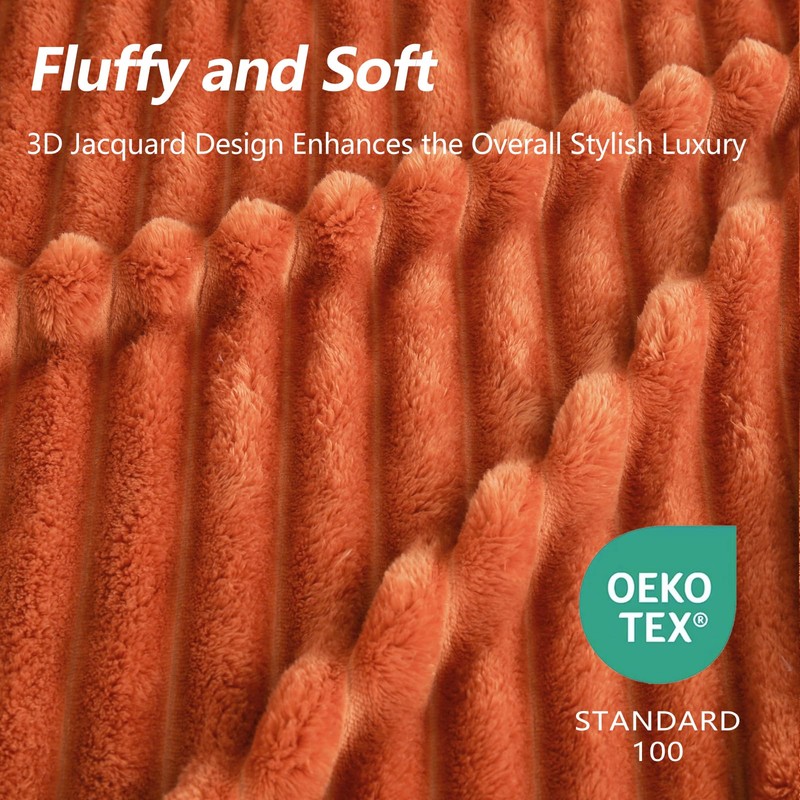 Bnuitland Oversized King Flannel Stripe Pattern Blanket 120x120 Inches, 300GSM Soft Extra Large for Couch,Bed, Lightweight Fuzzy Fleece 10x10 Huge Blanket for Whole Family, Burnt Orange