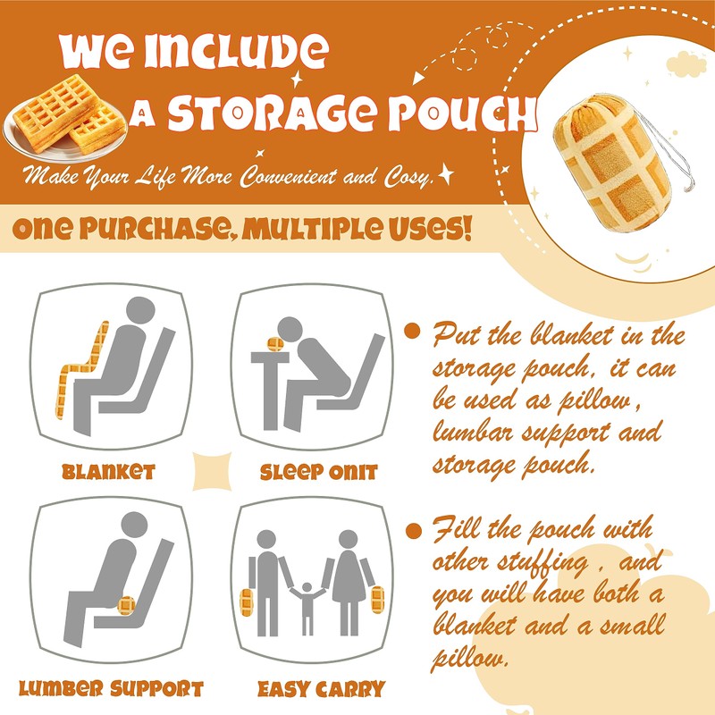 - UNIQUE DESIGN: The Waffle Blanket has a much more amusing Waffle pattern and comes with a lovely storage bag, the same material and Burritos print as the blanket. You can put the blanket in the storage bag before giving it to your loved one.