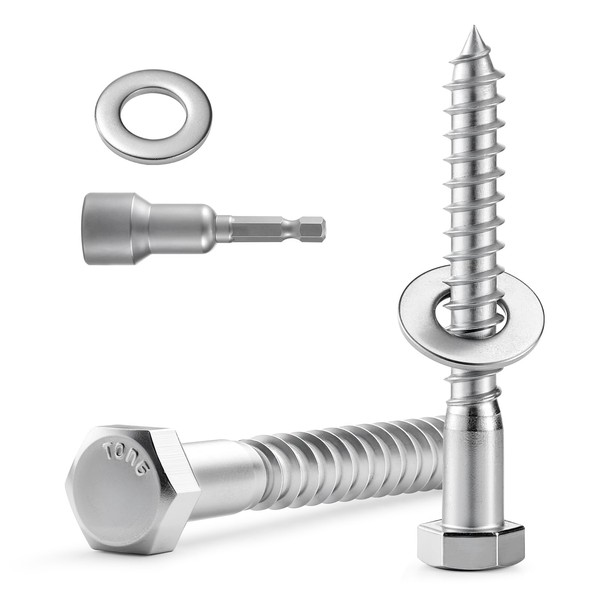 - Hex Head Screws: The hex head lag screws 2-1/2 can handle high torque, sharp points, clean threads, sturdy build, easy installation with the included hex driver. The flat washers add stability