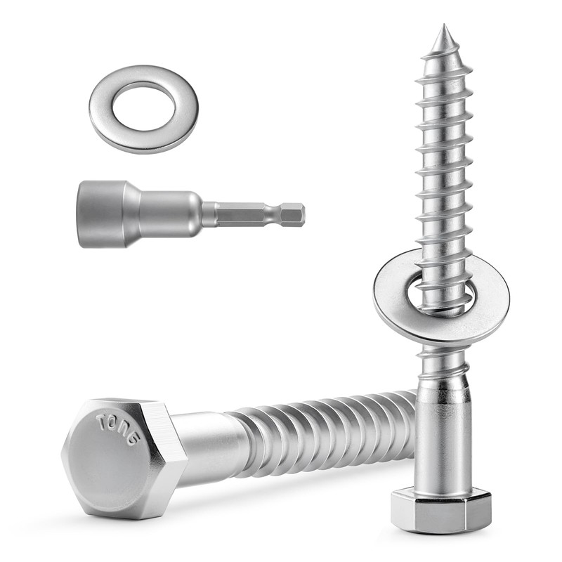 - Stainless Steel Lag Bolts: Our 5/16 lag bolts, washers are made of 304 stainless steel for superior corrosion resistance, longer service life. Anti-rust lag bolt for indoor and outdoor use