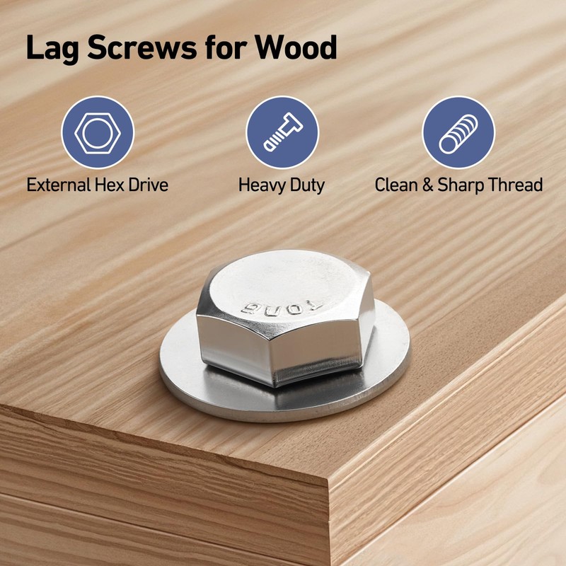 - Heavy Duty Lag Screw: Lag screws, also called lag bolts, firmly fasten wood together, stronger and thicker than typical wood screws