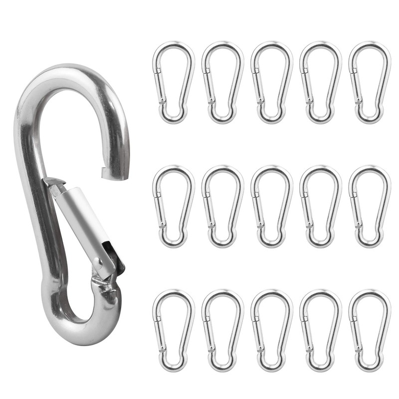 These Hooks is as tools carabiner in ourdoor or indoor equipment it is suitable for many kinds of ropes of corresponding specification it is used convenient fixure, It can be used in many fields , It is perfect sport equipment hooks for indoor/outdoor,you can take it for key ring ,camping,hiking ,gym,home connecting items,traveling,rope quickdraw pet chain connect,DIY your boat and so on Package Content: 15 Pcs x M8 5/16 inch Snap Spring Clip Hook