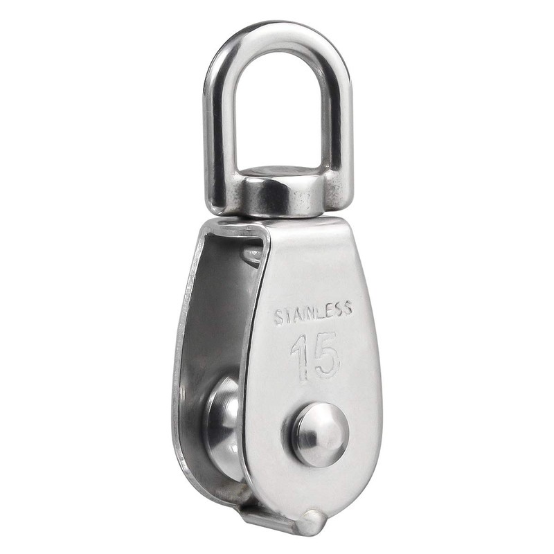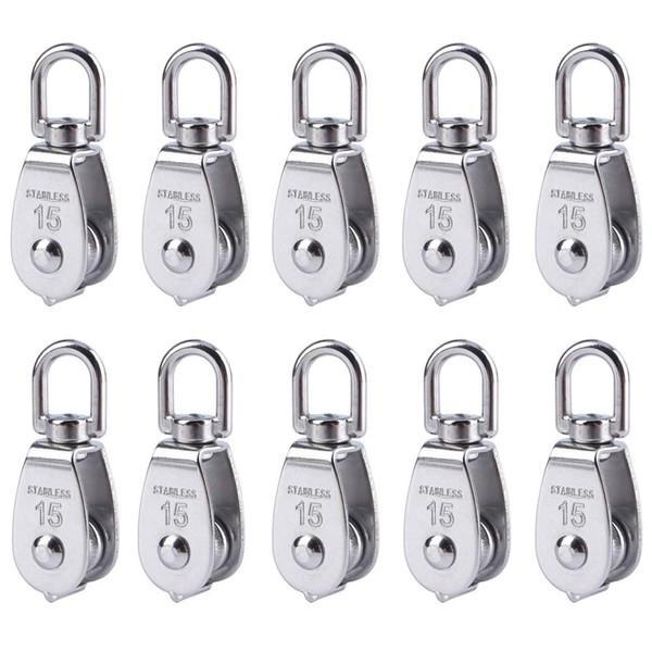 BNYZWOT Stainless Steel Wire Rope Crane Pulley Block M15 Lifting Crane Swivel Hook Single Pulley Block Hanging Wire Towing Wheel 10 Pcs