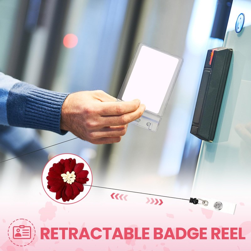 - Features: the design of the badge holder provides a retractable nylon wire, convenient for you to put the ID badges in a long distance, the nylon wire can be stretched to 24 inches; Badge reel diameter is 1 1/4 inch