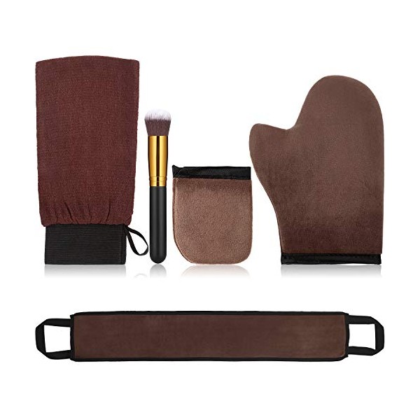 Boao Boao 5 Pieces Self Tanning Mitt Applicator Kit, Includes Tanning Mitt, Exfoliating Glove, Mini Face Glove, Back Lotion Applicator, and Large Brush Makeup(Brown)