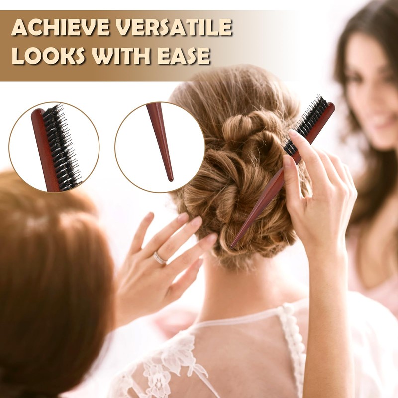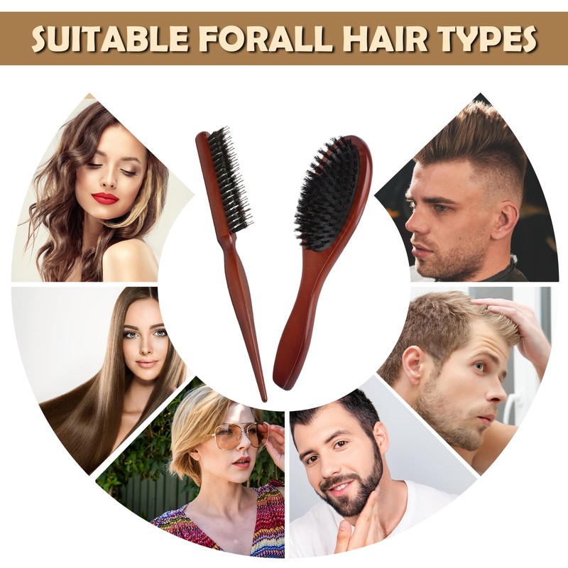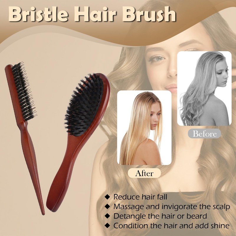 Boar Bristle Brush Pack of 2, Hair Brushes with Boar Bristles, Sleek Bun Brush