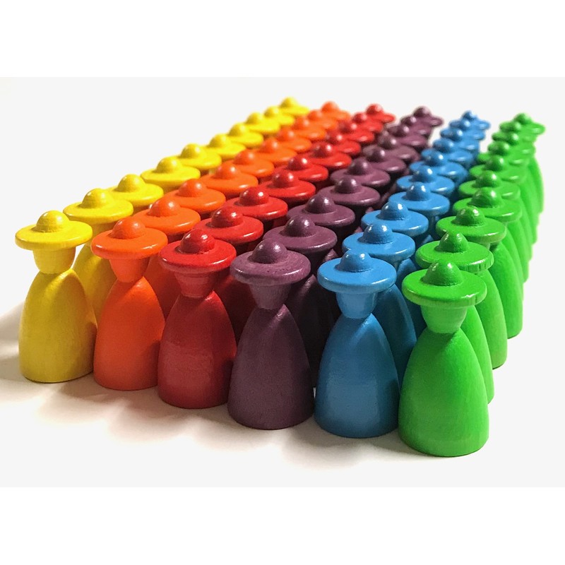 Board Game Figures: People/Male with Hat, Halma 13/26 mm (6 x 10 Toy Figures, Rainbow)