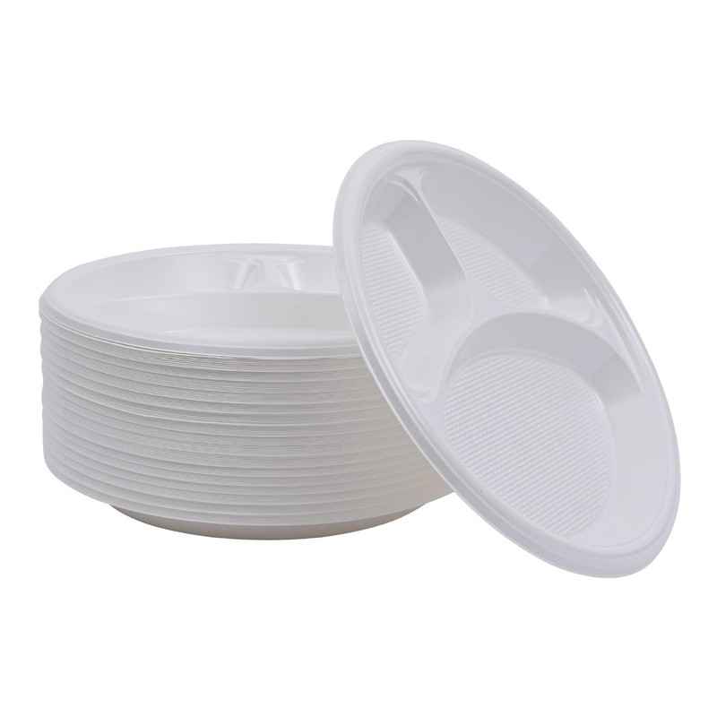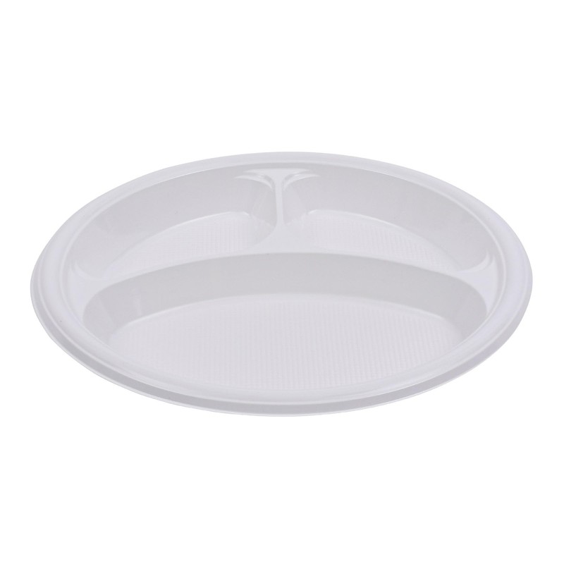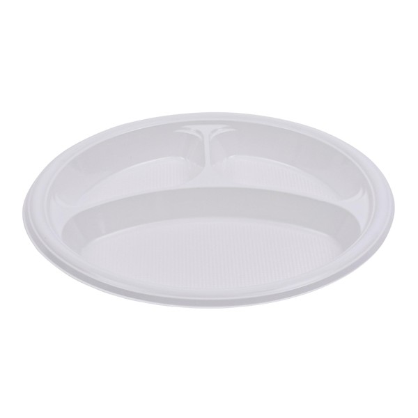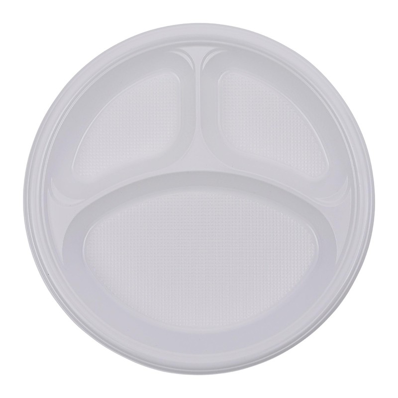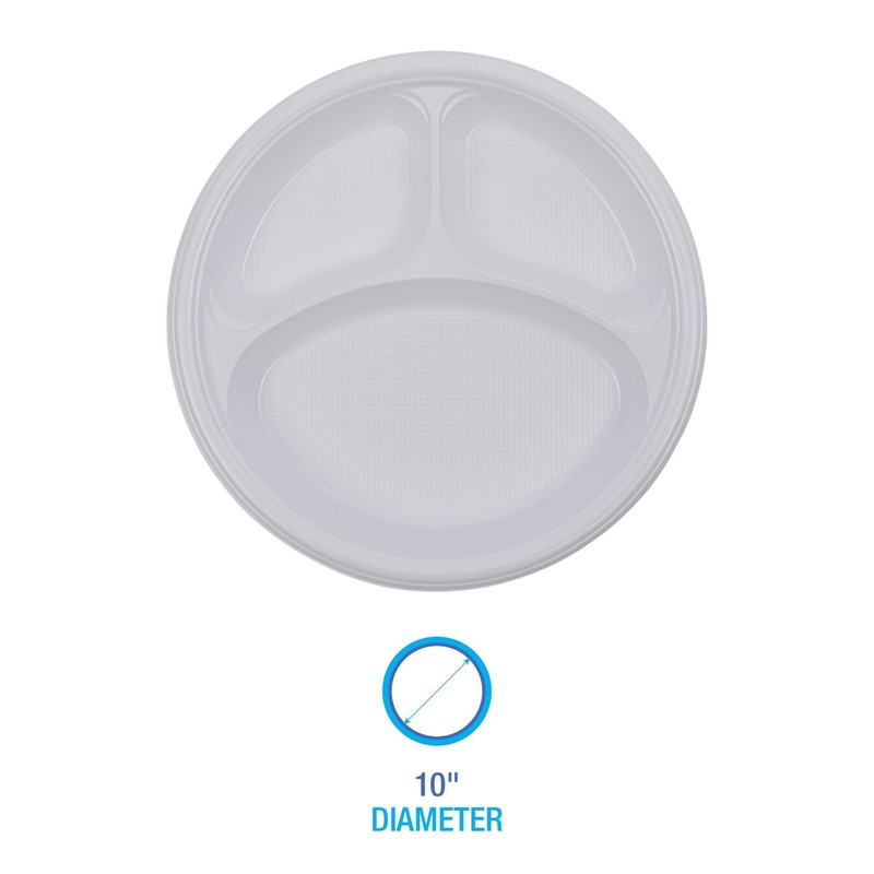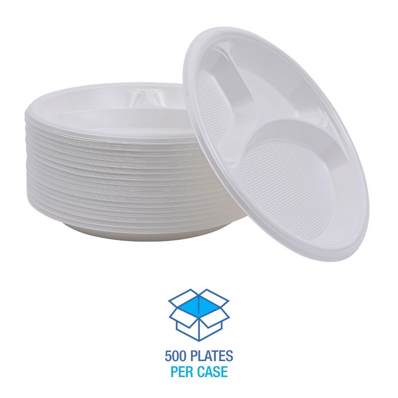 Boardwalk Hi-Impact Plastic Dinnerware, Plate, 3-Compartment, 10" dia, White, 500/Carton