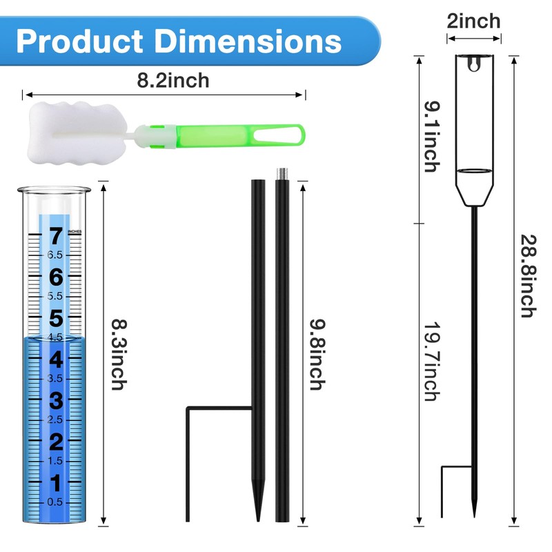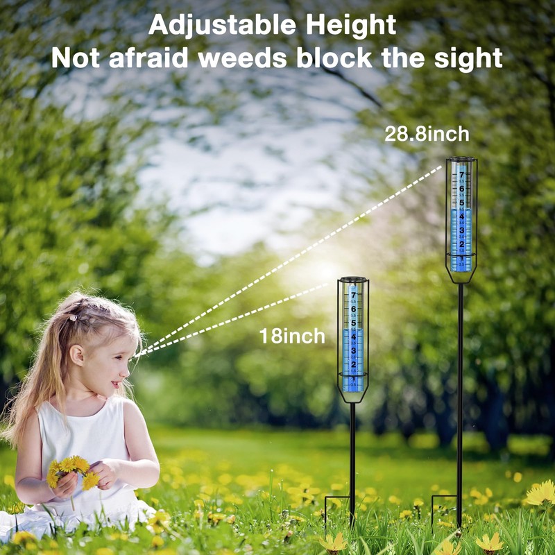 - 【🏡Upgrade Rain Gauge Tube 】The tube of the rain gauge is made of high-quality, eco-friendly, thick transparent plastic, which is clear and textured. Compared with the glass rain gauge tube, the transparent high-quality thick plastic tube will not freeze crack, not easy to break, and corrosion. add Blue strip at the rear of the glass tube, turning the water blue. This prevents reflection or transparency issues that caused difficulty to read the gauge data.