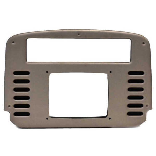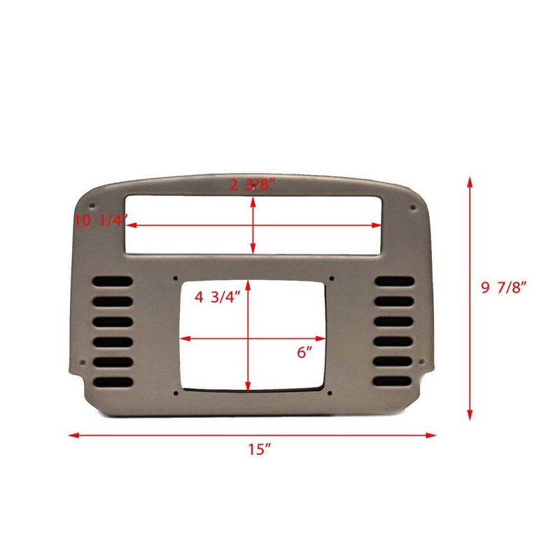 This blank chartplotter grille panel is constructed out of gray woodgrain marine grade plastic and includes a black plastic backing plate. Measures approximately 15" L x 9 7/8" H x 5/8" D overall and features (14) cutouts. It has (4) 1/8" mounting holes.