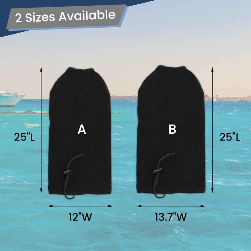 - Two sizes available: 12"W x 25"L cover fits 8.5"W x 27"L fenders, while 13.7"W x 25"L cover fits 10"W x 30"L fenders. The flexible knit construction delivers a snug, custom-like fit for most standard boat fenders. Easy to slip on and off, it accommodates both cylindrical and round fender shapes.
