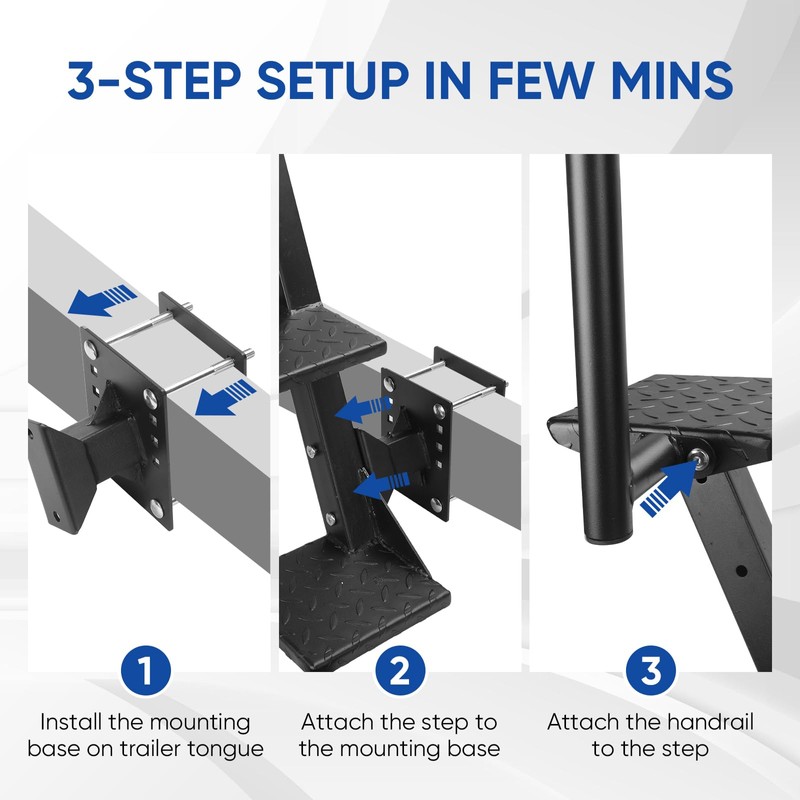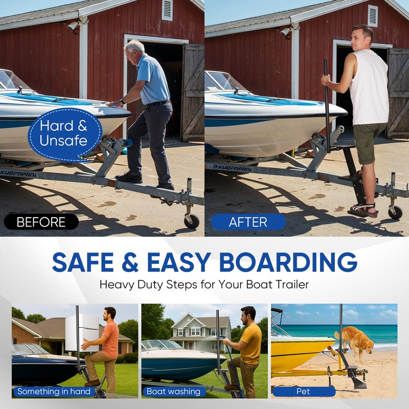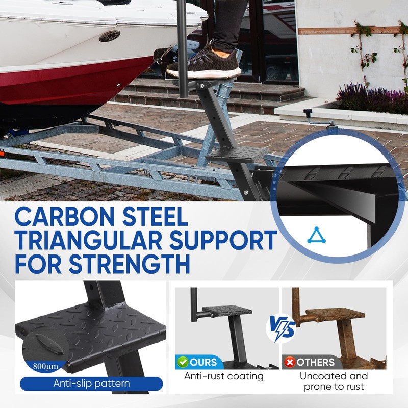 - HEAVY DUTY CARBON STEEL BUILD -- Built from premium carbon steel with a anti-rust coating, this boat trailer ladder steps withstand harsh saltwater environments for long-lasting durability and corrosion resistance.
