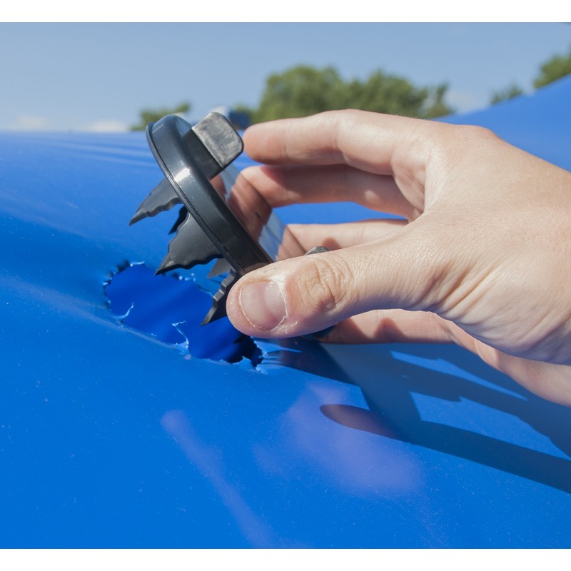 - Self piercing teeth, simply push down in the Shrink Wrap and twist