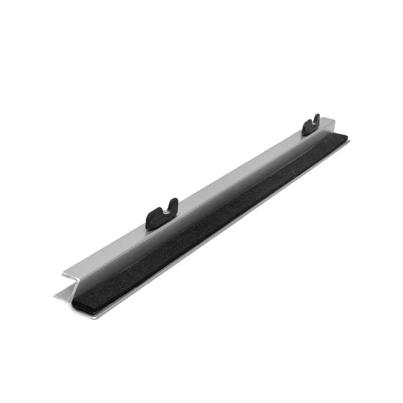 Constructed of marine grade, 12 gauge aluminum, this overlap bracket designed for glass windshields measures approximately 24" L x 1 7/8" W x 1 7/8" H. It connects to the windshield with a channel measuring 24" L x 5/8" W 3/4" H.