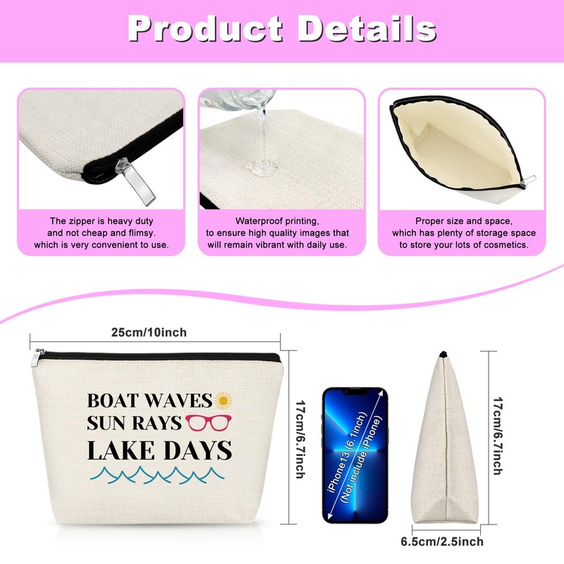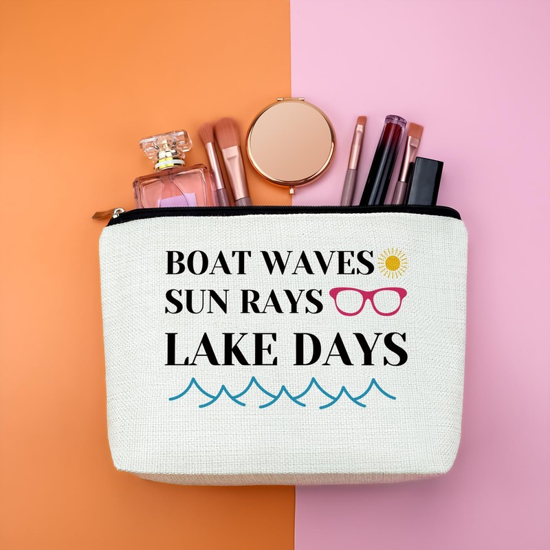 Boating Lake Lover Gift Beach Makeup Bag Summer Beach Lover Gifts Cosmetic Bag Boating Lake Make Up Bag Beach Decor Gift For Women Essentials For Vacation Beach Stuff Bag Best Travel Gift Ideas