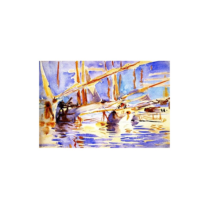 Boats in Harbor by John Singer Sargent - 18" x 27" Premium Canvas Print
