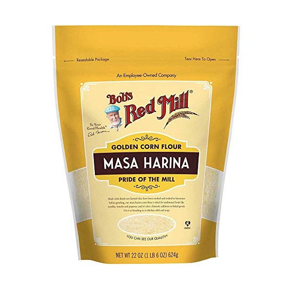 Bob's Red Mill masa Harina is a golden corn flour made from Hominy, which is