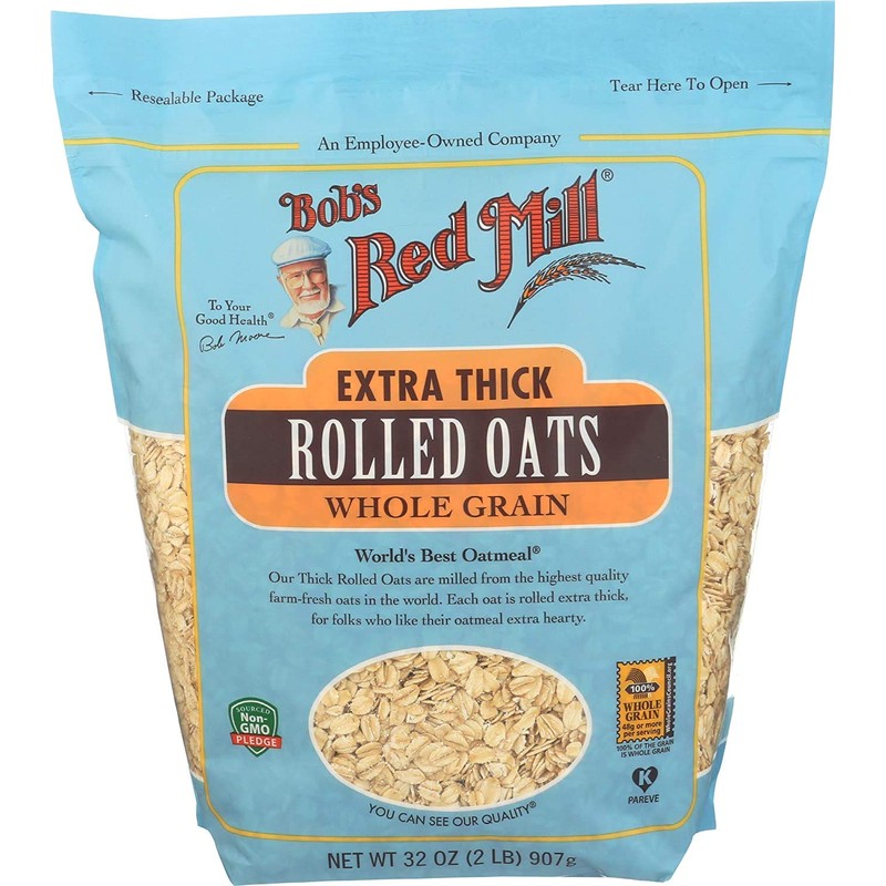 Bob's Red Mill Extra Thick Rolled Oats are kiln-toasted and rolled thick for a chewy-textured porridge. A hearty bowl of oatmeal in the morning will get your day started right and keep your hunger at bay with 7g of protein per serving. Not to mention the 5g of dietary fiber, and 15% daily value of iron. Talk about a power breakfast! These oats also make a great addition to your homemade granola or muesli. Sprinkle on rustic loaves or include in cookies - the possibilities are endless. When enjoying as porridge, try topping it off with some of Bob's Red Mill Chia Seeds, Flaxseed Meal, or Hulled Hemp Seed Hearts for an extra nutritional boost.