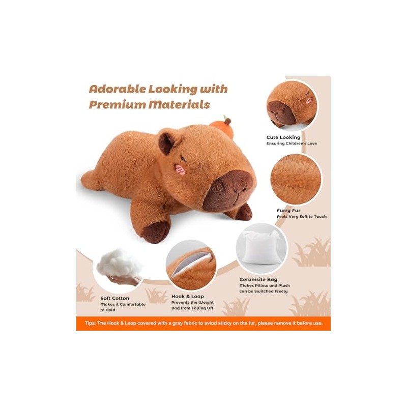 Bobbie & Laxi 25" & 4.5 lbs Capybara Weighted Stuffed Animals with Orange, Cuddly & Soft Kids' Plush Toy Pillows for Companion with Removable Ceramsite Bag, Gifts for Adults, Kids, Boys and Girls