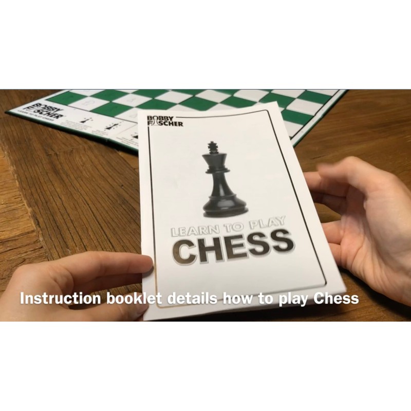 Bobby Fischer® Learn to Play Chess Set Board Game, Easy to Understand - How to Play Chess Book, 34 Plastic Staunton Chess Pieces, Folding Illustrated Chess Board, Family Games for Kids and Adults