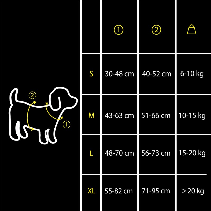 • Easy to use: thanks to the adjustable buckles and the click closure, the harness can be attached to long-haired coats in just a few seconds.