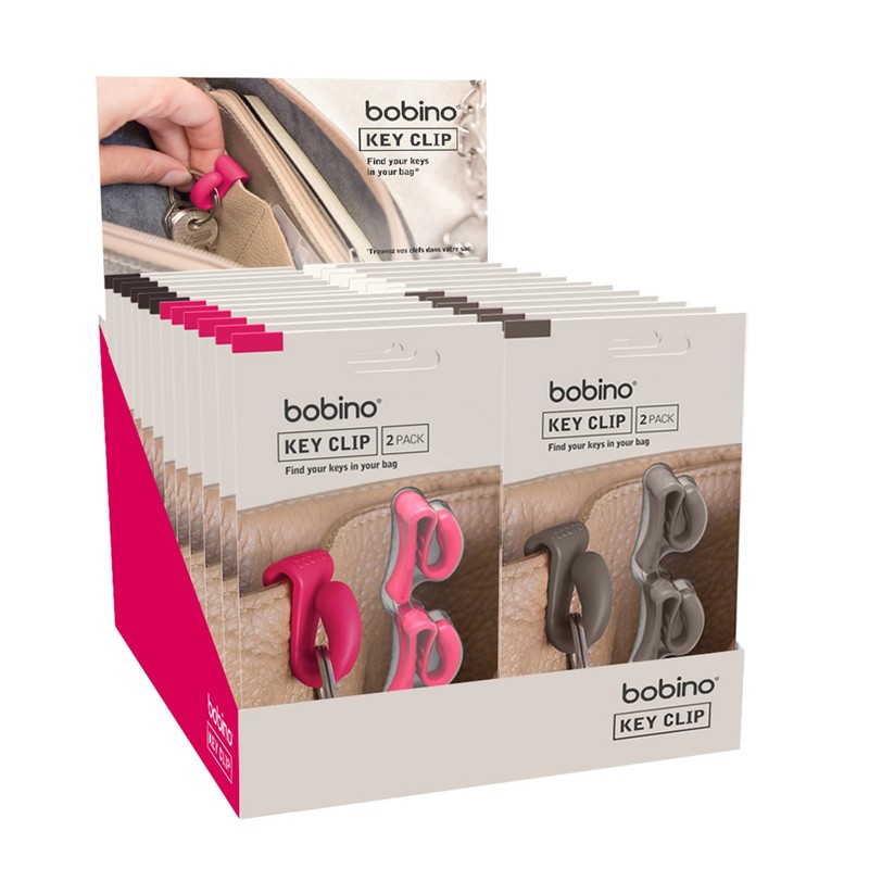 Bobino KEY CLIP makes it easy to locate your keys. No more searching in the depths of your hand bag, backpack, briefcase or purse. Bobino KEY CLIP was designed to attach to an inside border or pocket of your hand bag, briefcase, backpack or purse. Hanging your keys on the clip will make them easy to find, every time you need them. We recommend affixing Bobino KEY CLIP only to the inside of a bag, where they are secure and protected.