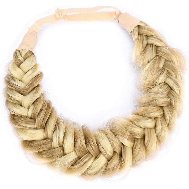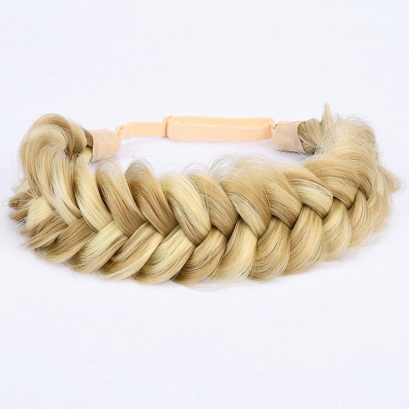 BOBIYA Messy Wide 2 Strands Synthetic Hair Auburn Braided Headband Classic Chunky Elastic Stretch Hair Band (Golden Brown Highlighted)