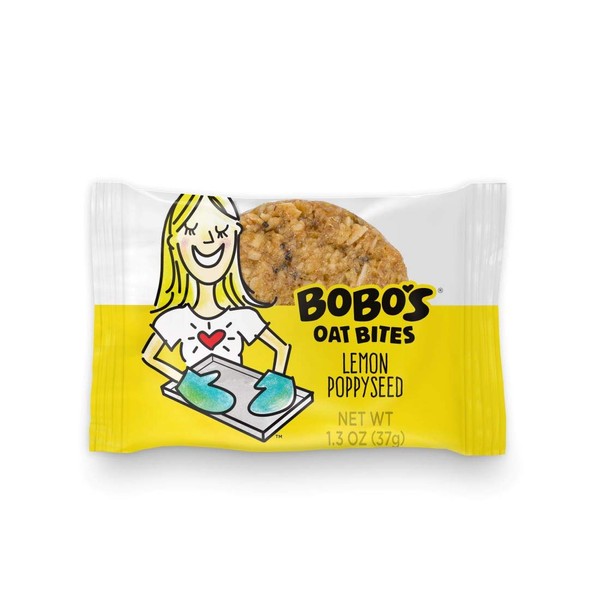 Bobo's Oat Bites (Lemon Poppyseed, 30 Pack Box of 1.3 oz Bites) Gluten Free Whole Grain Rolled Oat Snack- Great Tasting Vegan On-The-Go Snack, Made in the USA