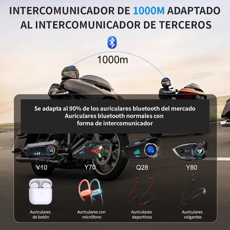 - Intercomunicador Bluetooth de Largo Alcance: Con una capacidad de intercomunicación de hasta 1000 metros, manténgase conectado con sus compañeros de viaje sin interrupciones. La tecnología Bluetooth avanzada permite una comunicación clara y fluida, facilitando la coordinación y aumentando la seguridad en el camino