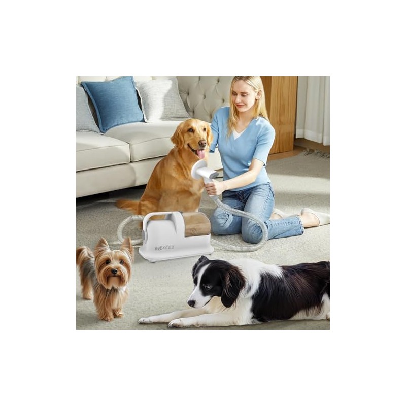 BoBoTails Pet Grooming Kit with Vacuum, 1.5L Large Waste Bin, Professional Dog Hair Trimmer with Attachments, White (White)
