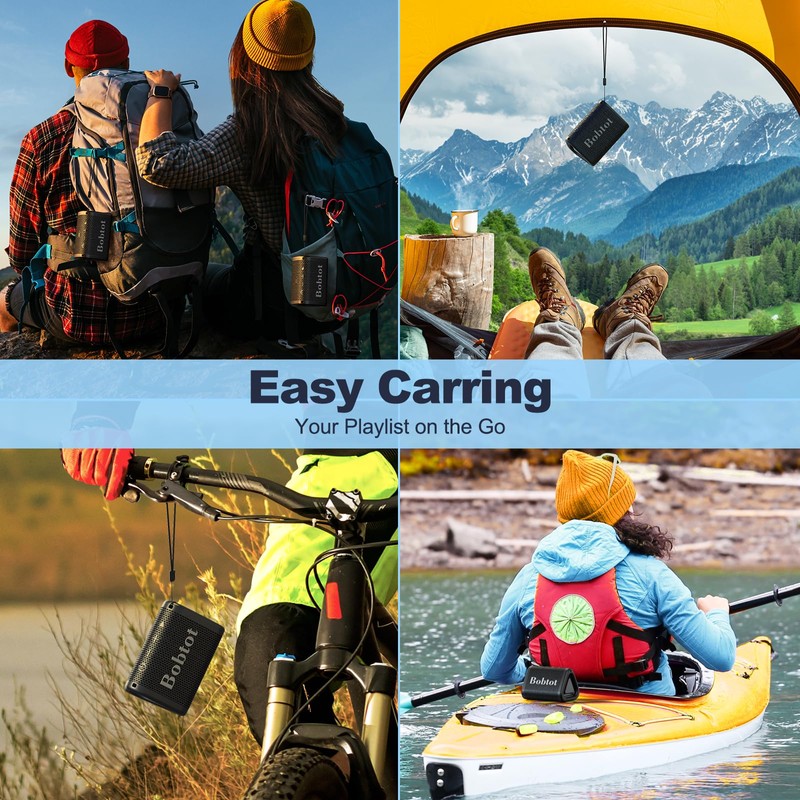 - Portable lanyard: Get rid of the conventional circular design, this Bluetooth portable speaker's unique design can be placed either flat or standing up, also comes with a handy lanyard that lets you easily take your music portable bluetooth speakers wherever you go. Perfect for Home, Party, Beach, Poolside, Camping, Hiking, Cycling, Kayak