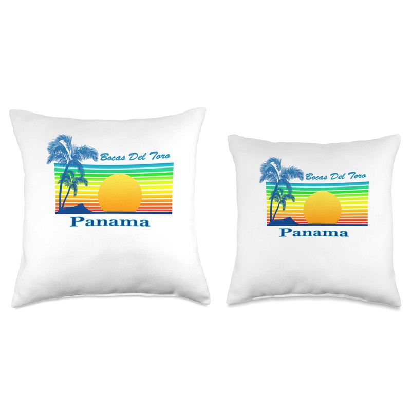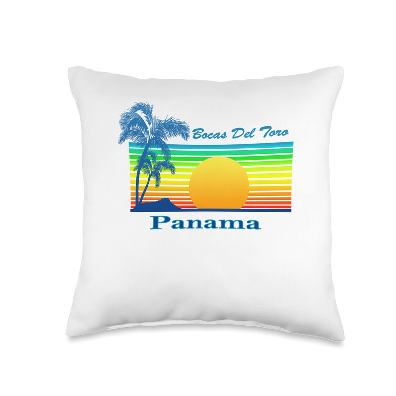 Bocas Del Toro Retro Tropical Beach Sunset Throw Pillow