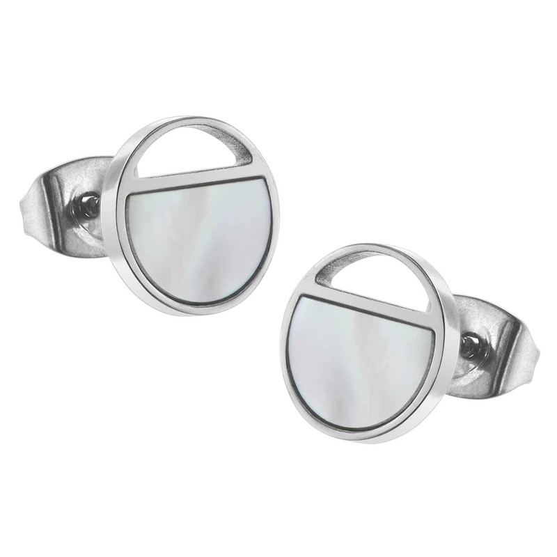 Boccia 05034-01 Stud Earrings in Round Shape Made of Polished Pure Titanium with Real Mother of Pearl Insert, Colour: Silver, Diameter: 9.5 mm, Titanium, No gemstone.