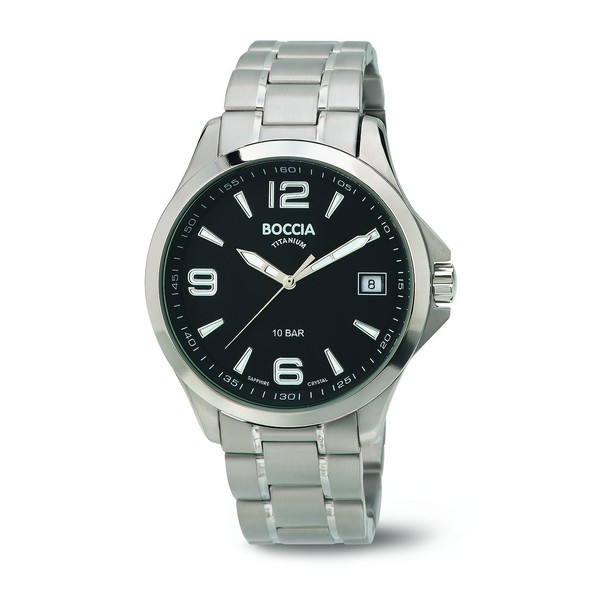 Boccia Men's Quartz Watch with Black Dial Analogue Display and Silver Titanium Bracelet B3591-02