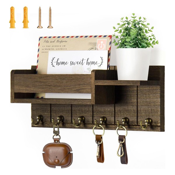 Bocguy Key Holder with Shelf, Wooden Key Holder with 6 Hooks, Decorative Key ...
