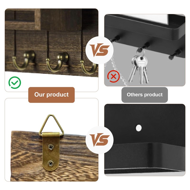 • High-quality and durable: key holder made of high-quality solid wood with robust load capacity, robust and durable. Perfect for storing keys, letters or as a stylish shelf for decoration.