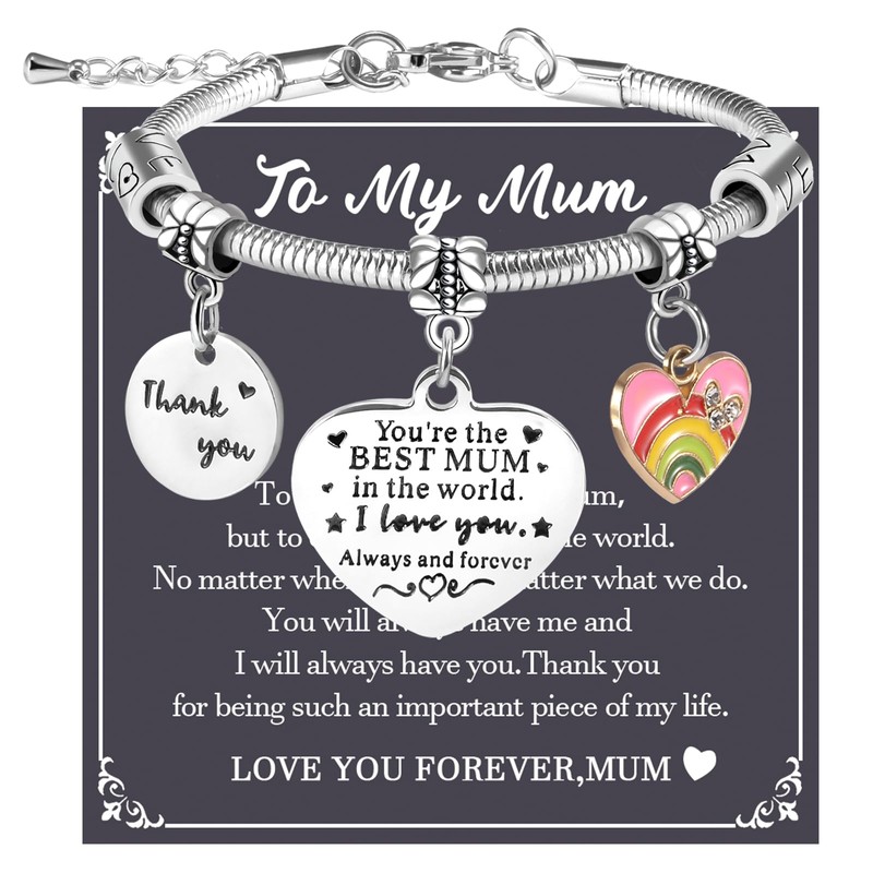 BOCHOI Mum Bracelet, Gifts for Mum Mother Bracelet from Son and Daughter Silver Charm Bracelets for Mother's Day Gift for Women