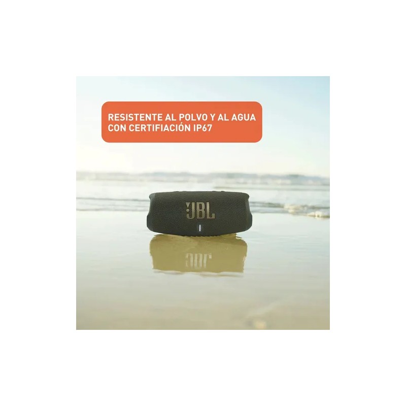 Para ir a la piscina. Para ir al parque. El JBL Charge 5 es resistente al polvo y el agua conforme a la norma IP67 para que puedas llevar tu altavoz a cualquier parte.