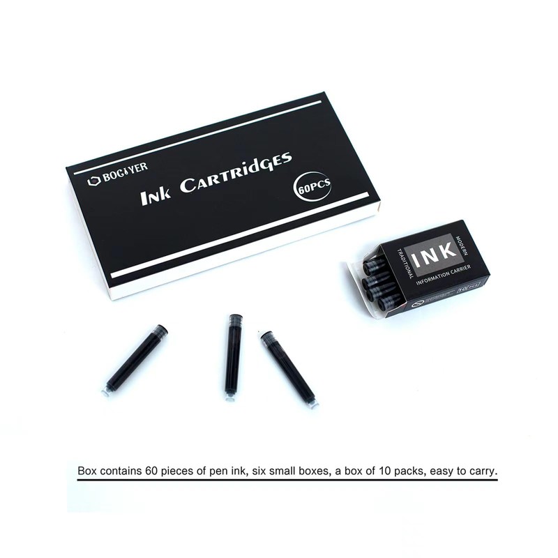 BOCIYER 60 Count Fountain Pen Ink Cartridges | 3.4 mm bore diameter | Black Ink