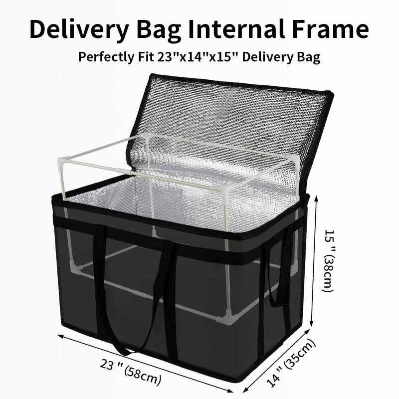 • Keeps Bag Upright & Professional Looking The internal frame holds the shape of the bag, preventing inward collapse. Delivers a cleaner, more professional look for your food delivery setup.