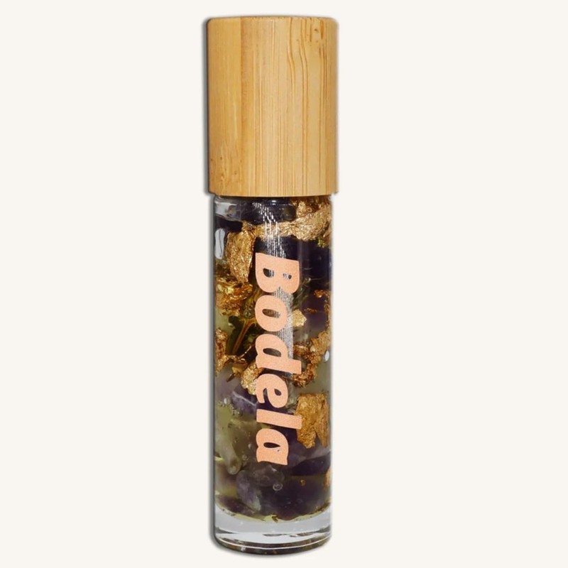 Bodela Bodela 10 ml Essential Oil Roller (24K Gold, Crystals, Exotic Flowers, and Jojoba and Neroli Essential Oils) - Natural Stone for Effective Relief (10 ml, New Energy)