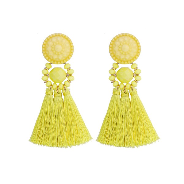boderier Bohemian Statement Thread Tassel Chandelier Drop Dangle Earrings with Cassandra Button Stud (Yellow)