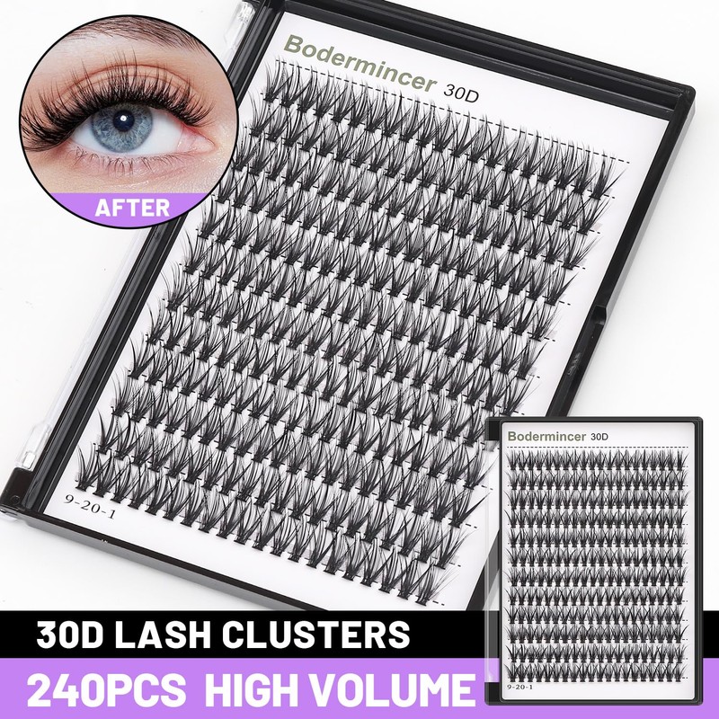 - 🧡Bodermincer Brand The hottest Cluster lashes among the social media are avaiable now! 30D Black Lashes 240pcs clsuters Large Tray ,D Curl 8mm,9mm,10mm,11mm,12mm,13mm,14mm,15mm,16mm,17mm,18mm,19mm,20mm,21mm,22mm to choose .Natural look .false eyelashes can adorn your eyes and make them more charming.