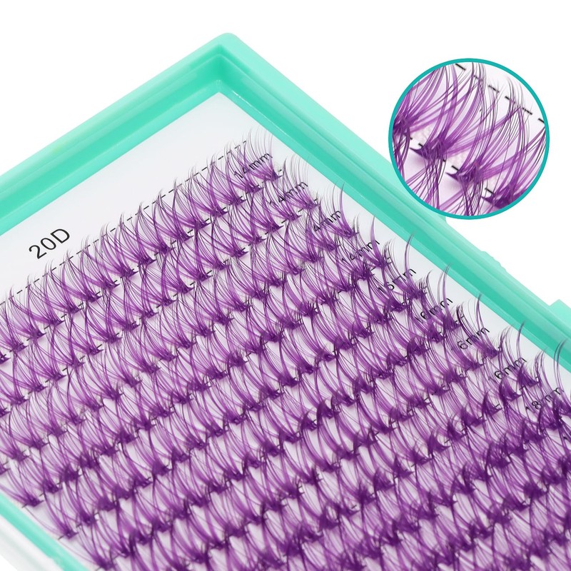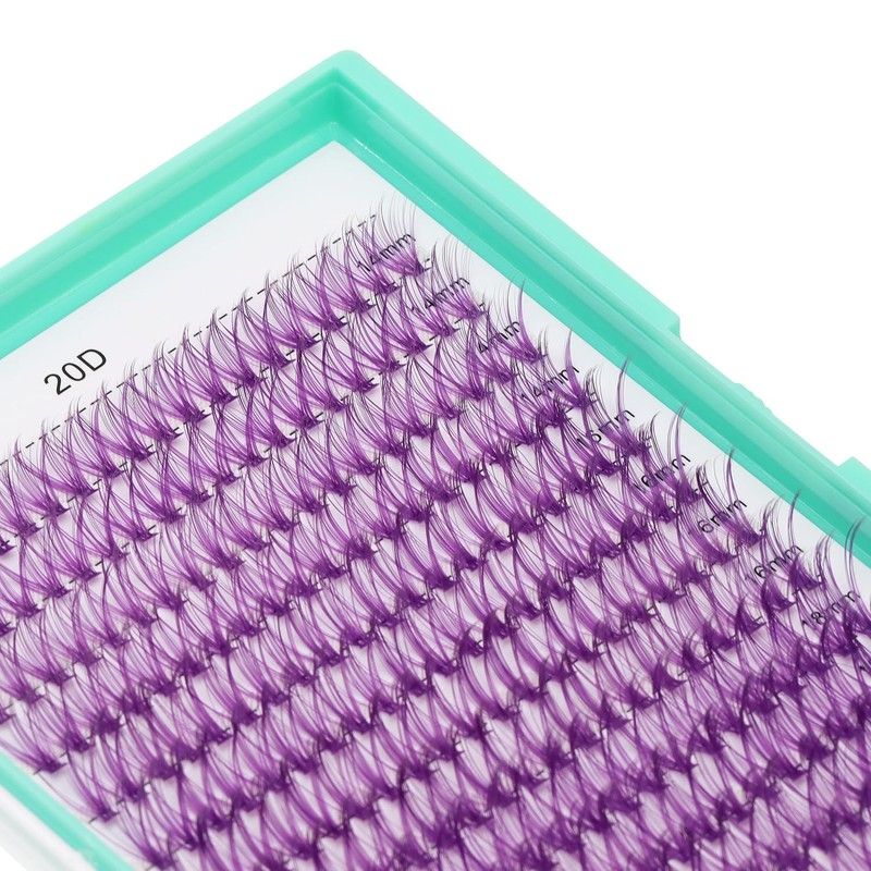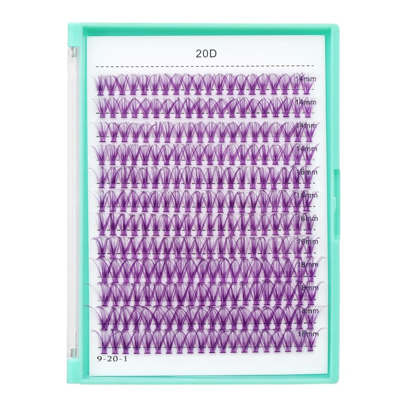 Bodermincer 20D/30D/40D/50D Cluster Large Tray 240pcs D Curl Individual Cluster Eyelashes False Eyelashes Extension Individual Eyelash Bunche Lash Cluster DIY at Home (20D Purple-14-16-18mm MIX)