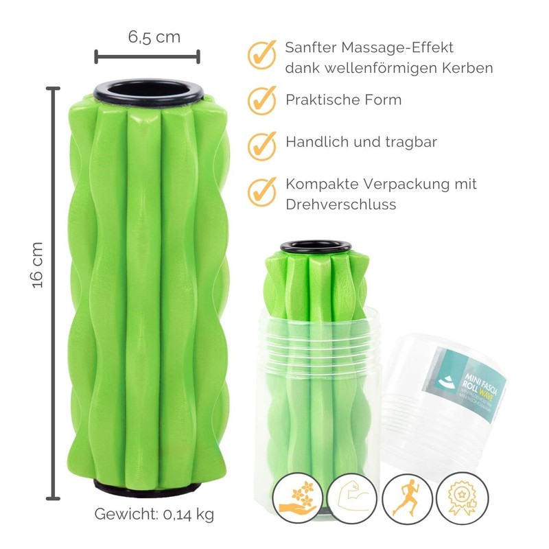 - Flexible use: the mini fascia roller is versatile and ideal for smaller body surfaces such as arms, legs (calves) and feet. The sports accessory is suitable for self-massage, fascia therapy, for regeneration exercises or tissue muscle tension