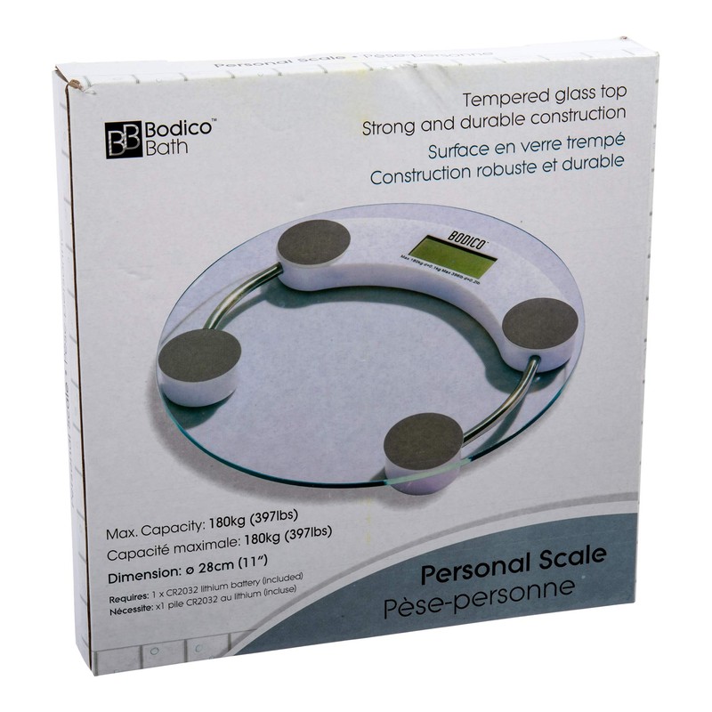 Bodico Modern and Sleek Tempered Glass Bathroom Digital Body Scale, 11 x 11 inches, Clear